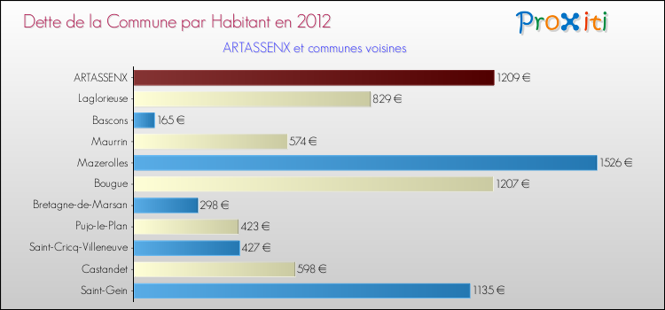 A Artassenx, la dette due par habitant de la commune en 2012 est donc plus élevée de 142.77 % que pour des communes similaires.