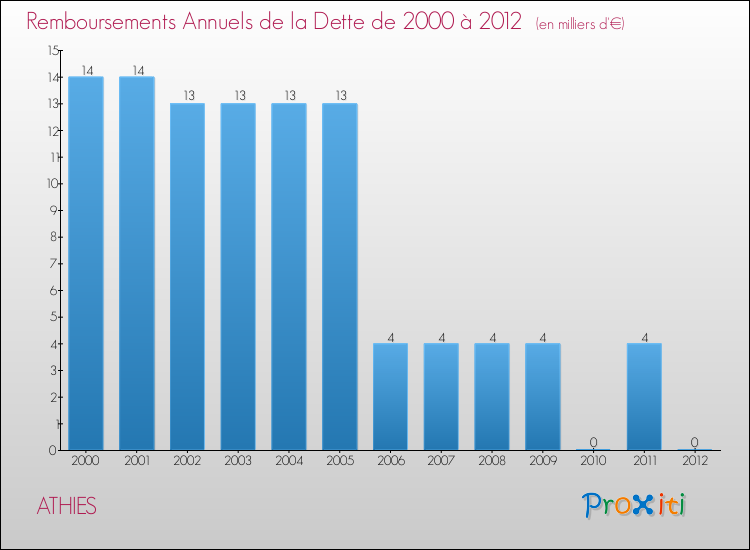 Par rapport aux 660 habitants de Athies, en 2012 le poids de cette dette représente 0 € par habitant.