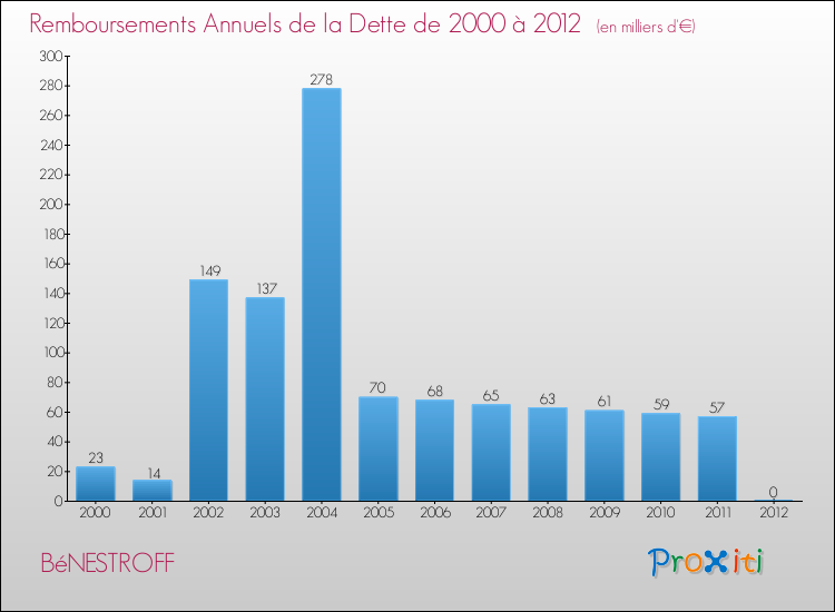 En 2012, Bénestroff a dû payer 0 € rien que pour rembourser sa dette.