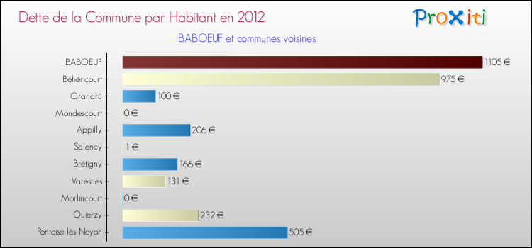 A Baboeuf, la dette due par habitant de la commune en 2012 est donc plus élevée de 85.4 % que pour des communes similaires.