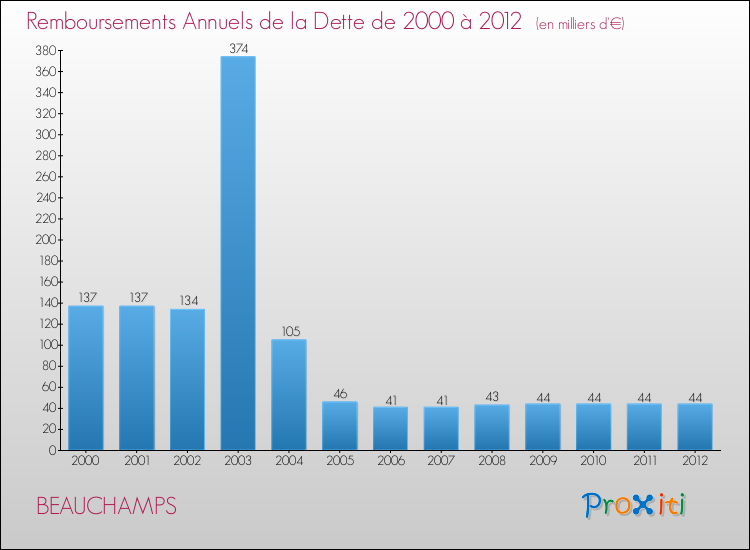 A Beauchamps, ce montant de la dette est pourtant en baisse de 6.52 % par rapport à 2011.
