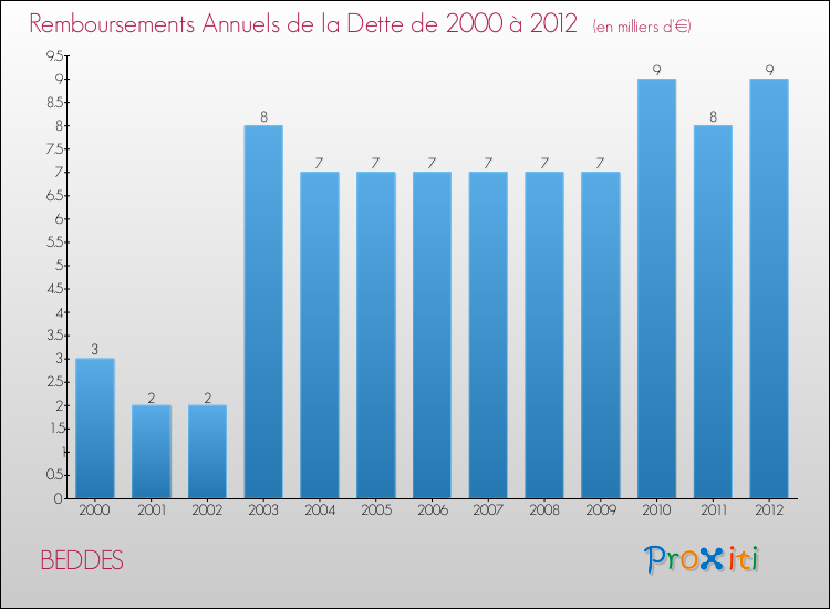 A Beddes, la dette par habitant a donc augmenté de 2751.22 % entre 2000 et 2012.
