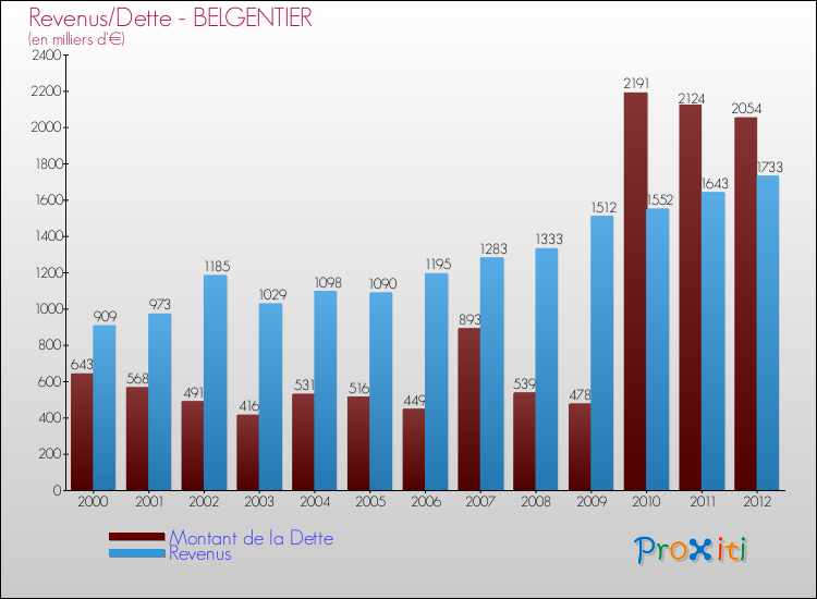 Comparaison Revenus/Dette de Belgentier (de 2000 à 2012)