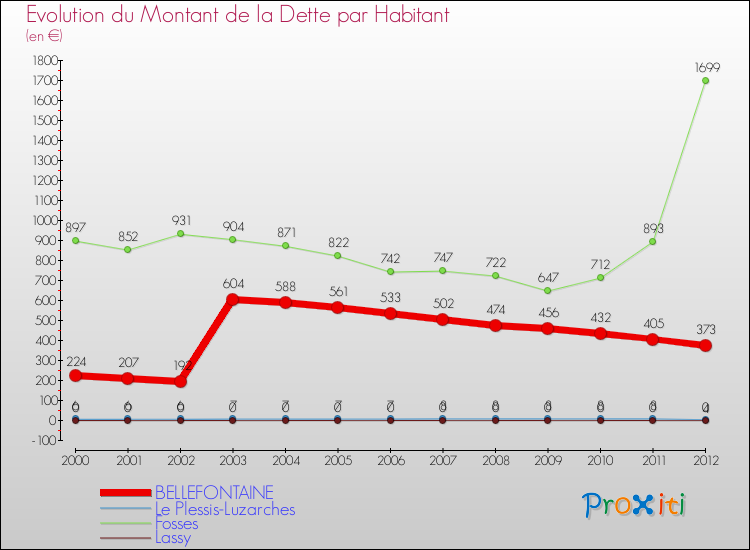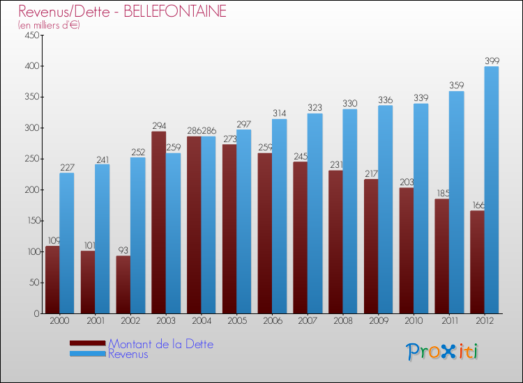 Par rapport aux 446 habitants de Bellefontaine, en 2012 le poids de cette dette représente 373 € par habitant.