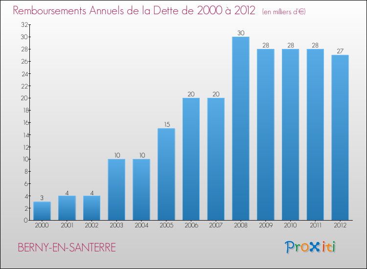 A Berny-en-Santerre, la dette par habitant a donc augmenté de 455.19 % entre 2000 et 2012.