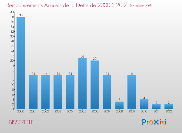 Annuités de la dette  pour BISSEZEELE de 2000 à 2012