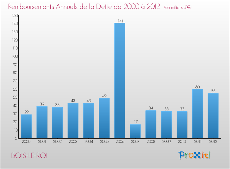 A Bois-le-Roi, la dette due par habitant de la commune en 2012 est donc plus élevée de 0.3 % que pour des communes similaires.