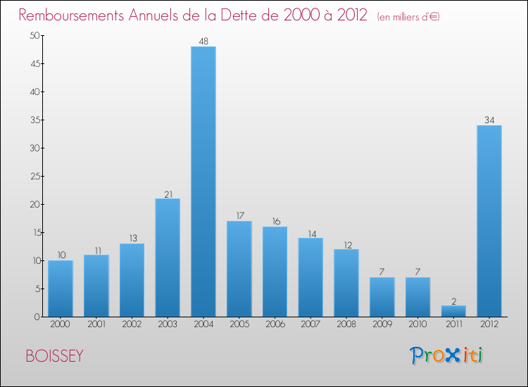 A Boissey, ce montant de la dette est en augmentation de 46550 % par rapport à 2011.