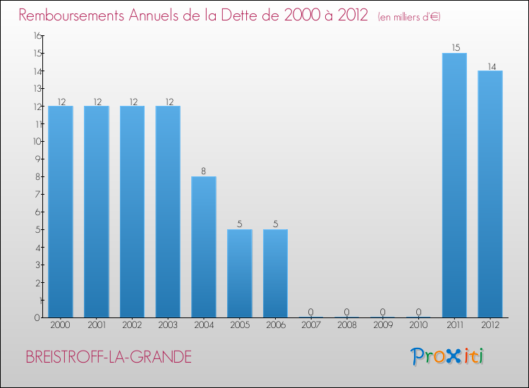 A Breistroff-la-Grande, ce montant de la dette est pourtant en baisse de 6.43 % par rapport à 2011.