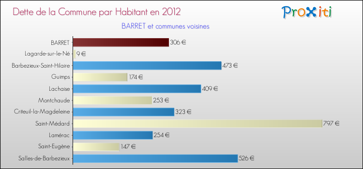 A Barret, la dette due par habitant de la commune en 2012 est donc moins élevée de 48.66 % que pour des communes similaires.