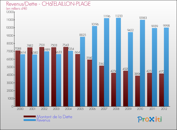 Comparaison Revenus/Dette de Châtelaillon-Plage (de 2000 à 2012)