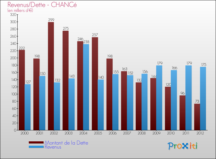 Comparaison Revenus/Dette de Chancé (de 2000 à 2012)