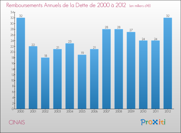 Par rapport aux 459 habitants de Cinais, en 2012 le poids de cette dette représente 308 € par habitant.