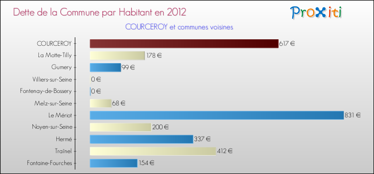 A Courceroy, la dette due par habitant de la commune en 2012 est donc plus élevée de 22.18 % que pour des communes similaires.