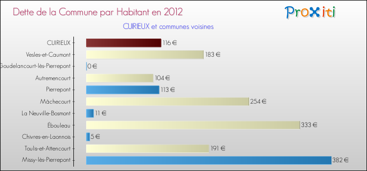 Par rapport aux 167 habitants de Cuirieux, en 2012 le poids de cette dette représente 116 € par habitant.