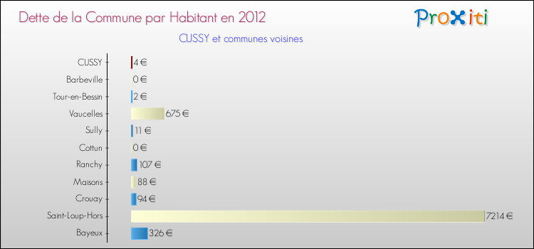 Par rapport aux 144 habitants de Cussy, en 2012 le poids de cette dette représente 4 € par habitant.