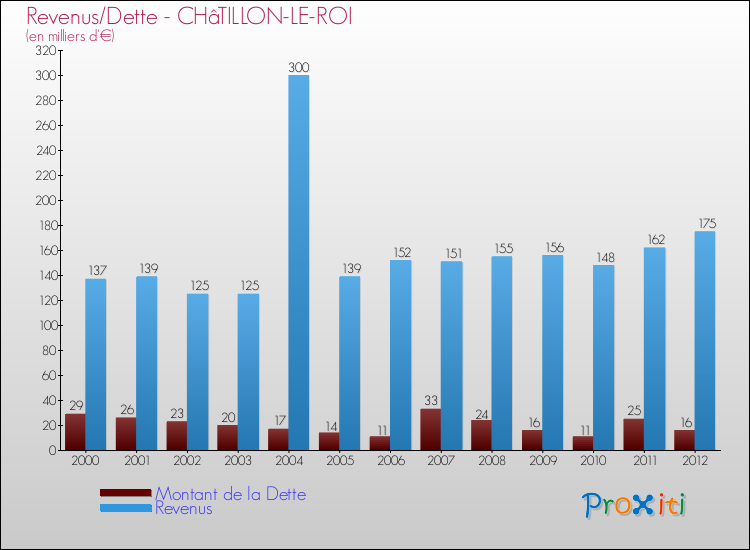 Comparaison Revenus/Dette de Châtillon-le-Roi (de 2000 à 2012)