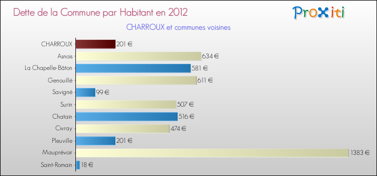 Par rapport aux 1187 habitants de Charroux, en 2012 le poids de cette dette représente 201 € par habitant.