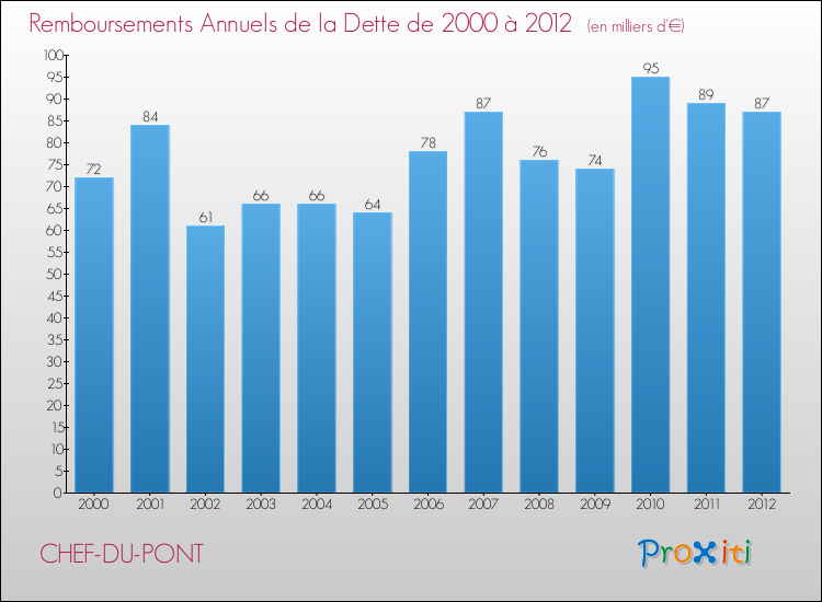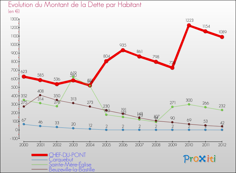 Par rapport aux 781 habitants de Chef-du-Pont, en 2012 le poids de cette dette représente 1089 € par habitant.