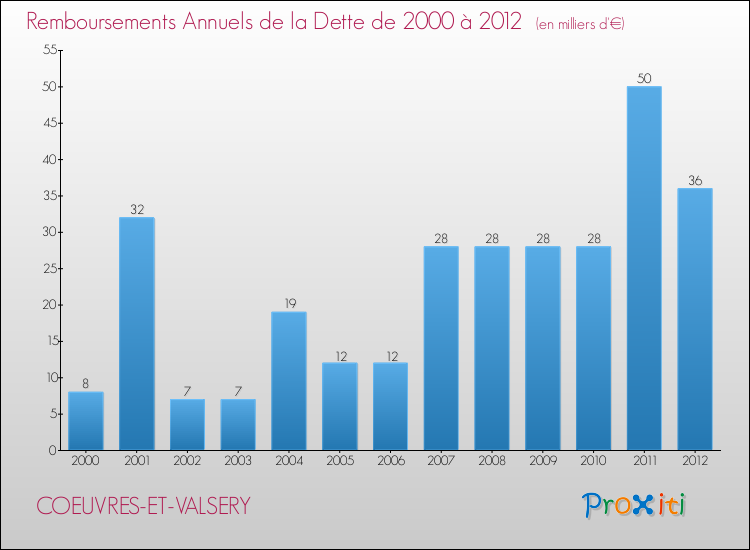 A Coeuvres-et-Valsery, ce montant de la dette est en augmentation de 93.64 % par rapport à 2011.