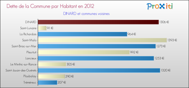 A Dinard, la dette due par habitant de la commune en 2012 est donc plus élevée de 29.95 % que pour des communes similaires.