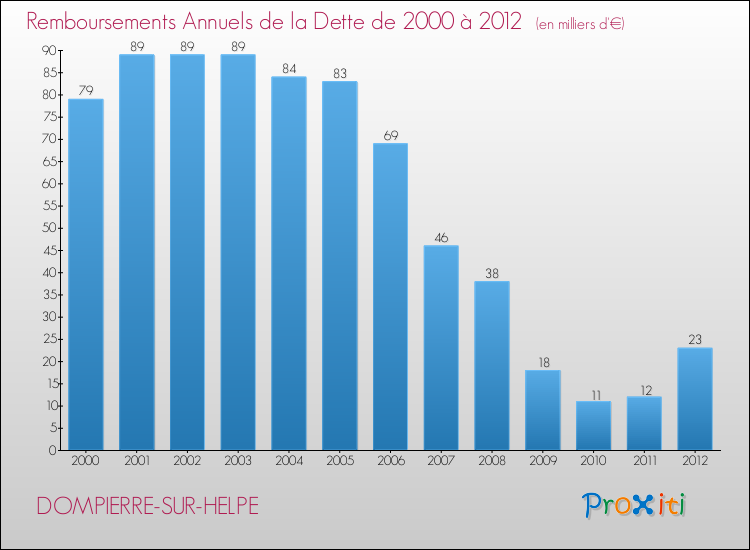 A Dompierre-sur-Helpe, la dette par habitant a donc baissé de 50.46 % entre 2000 et 2012.