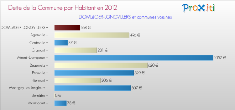 A Domléger-Longvillers, la dette due par habitant de la commune en 2012 est donc moins élevée de 69.12 % que pour des communes similaires.
