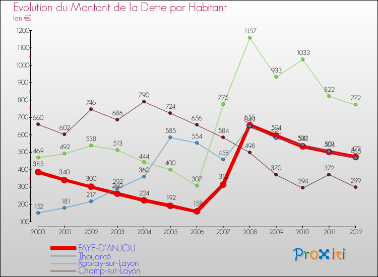 A Faye-d'Anjou, ce montant de la dette est pourtant en baisse de 3.96 % par rapport à 2011.