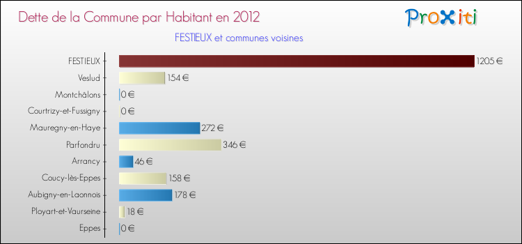 Par rapport aux 576 habitants de Festieux, en 2012 le poids de cette dette représente 1205 € par habitant.