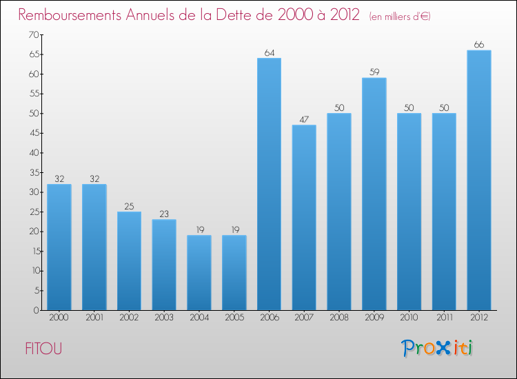 Par rapport aux 932 habitants de Fitou, en 2012 le poids de cette dette représente 756 € par habitant.