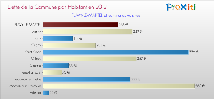 Par rapport aux 1654 habitants de Flavy-le-Martel, en 2012 le poids de cette dette représente 286 € par habitant.