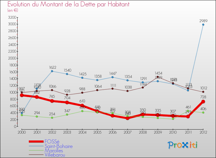 A Fossé, ce montant de la dette est en augmentation de 163.14 % par rapport à 2011.