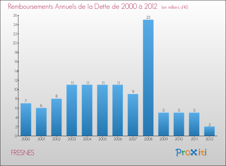 Par rapport aux 148 habitants de Fresnes, en 2012 le poids de cette dette représente 3 € par habitant.