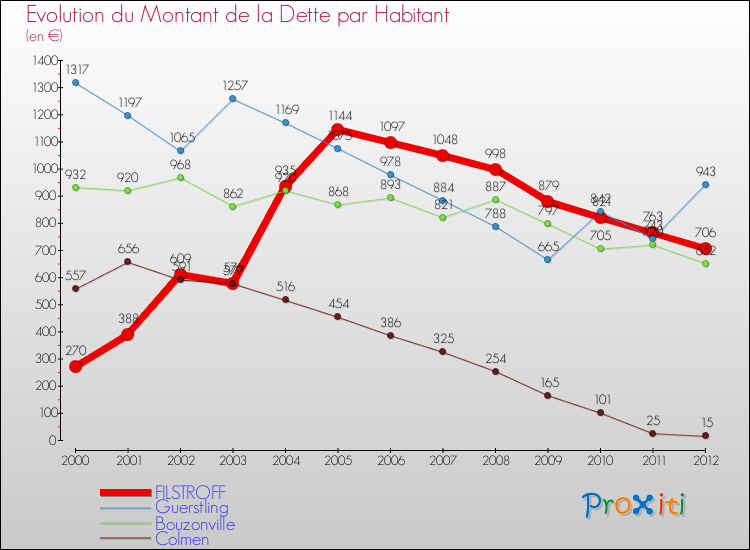 Par rapport aux 881 habitants de Filstroff, en 2012 le poids de cette dette représente 706 € par habitant.