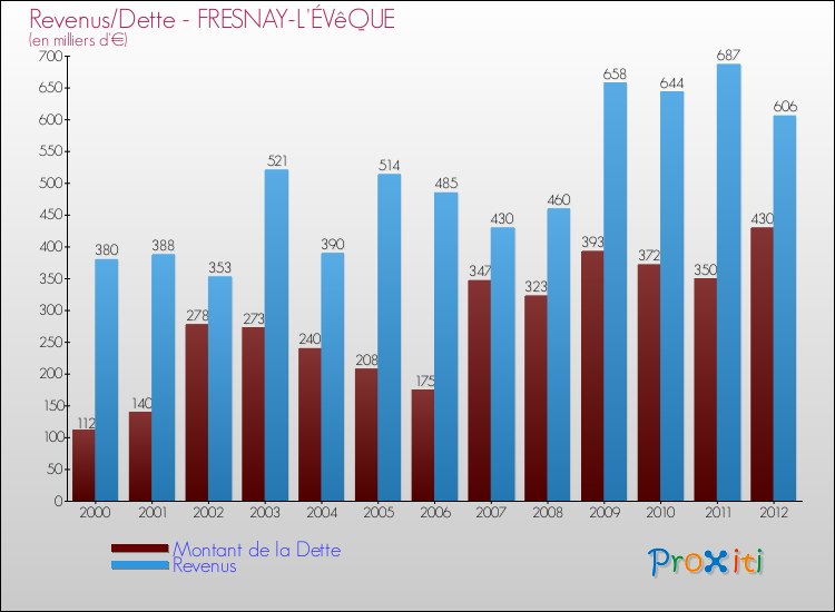Comparaison Revenus/Dette de Fresnay-l'Évêque (de 2000 à 2012)