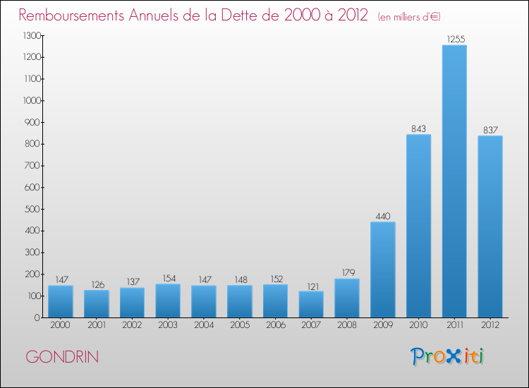 En 2012, Gondrin a dû payer 837 000 € rien que pour rembourser sa dette.