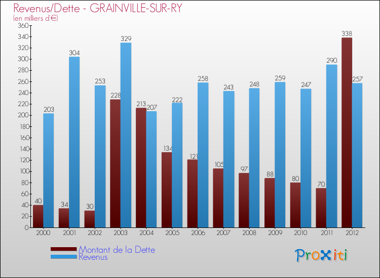 Comparaison Revenus/Dette de Grainville-sur-Ry (de 2000 à 2012)