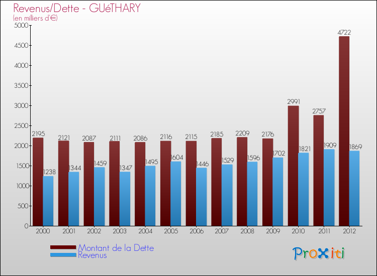 Par rapport aux 1383 habitants de Guéthary, en 2012 le poids de cette dette représente 3414 € par habitant.