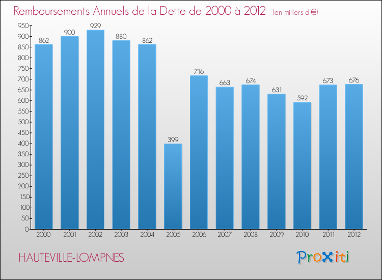 A Hauteville-Lompnes, ce montant de la dette est pourtant en baisse de 0.5 % par rapport à 2011.