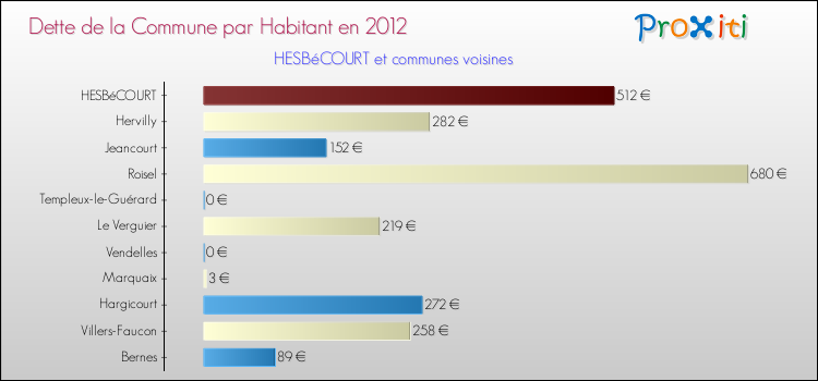 A Hesbécourt, la dette due par habitant de la commune en 2012 est donc plus élevée de 1.39 % que pour des communes similaires.