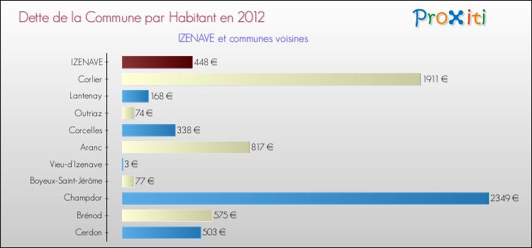 Par rapport aux 164 habitants de Izenave, en 2012 le poids de cette dette représente 448 € par habitant.