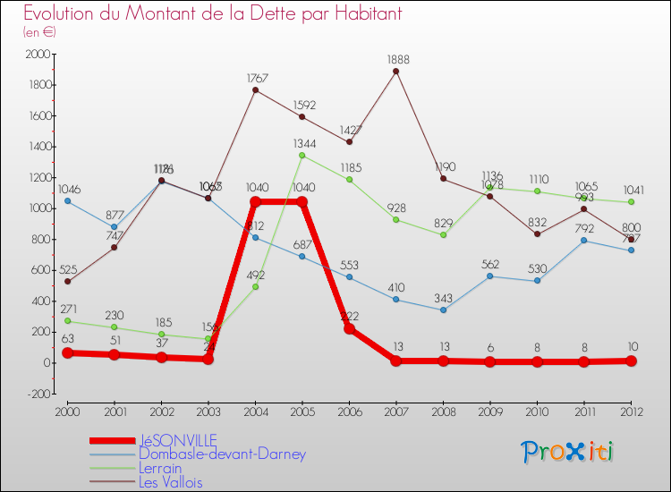 Par rapport aux 131 habitants de Jésonville, en 2012 le poids de cette dette représente 10 € par habitant.