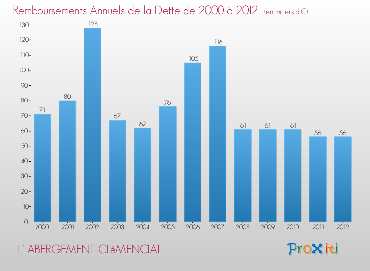En 2012, L' Abergement-Clémenciat a dû payer 56 000 € rien que pour rembourser sa dette.