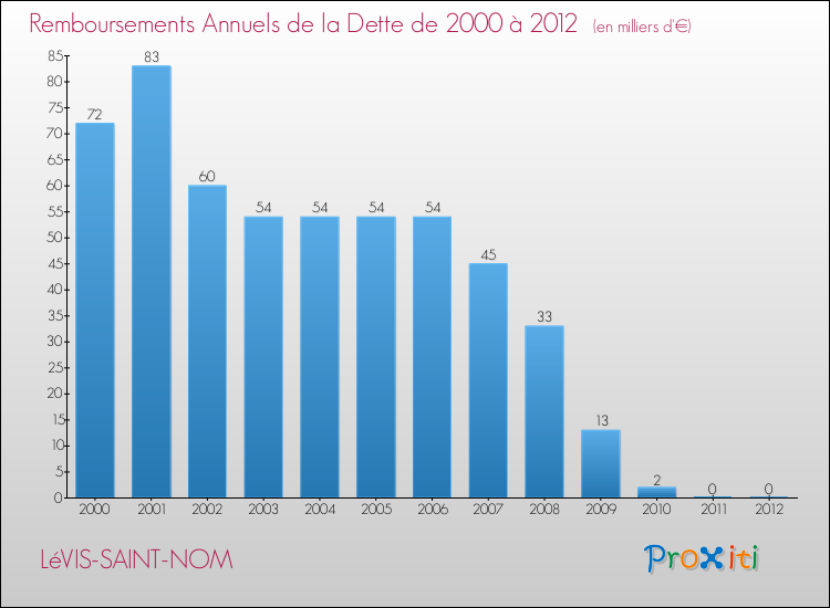 Par rapport aux 1767 habitants de Lévis-Saint-Nom, en 2012 le poids de cette dette représente 0 € par habitant.