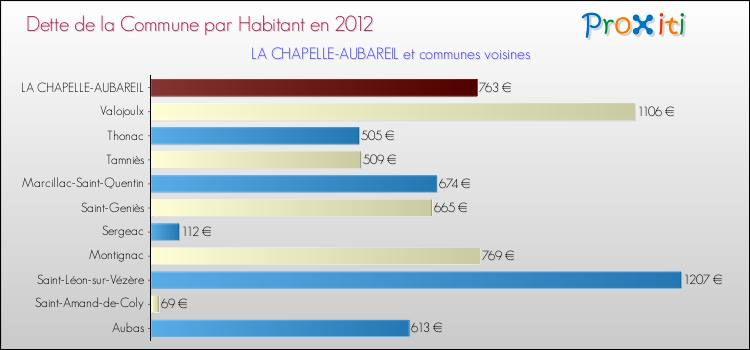 Par rapport aux 476 habitants de La Chapelle-Aubareil, en 2012 le poids de cette dette représente 763 € par habitant.