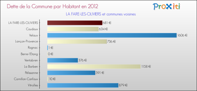 Par rapport aux 6806 habitants de La Fare-les-Oliviers, en 2012 le poids de cette dette représente 681 € par habitant.
