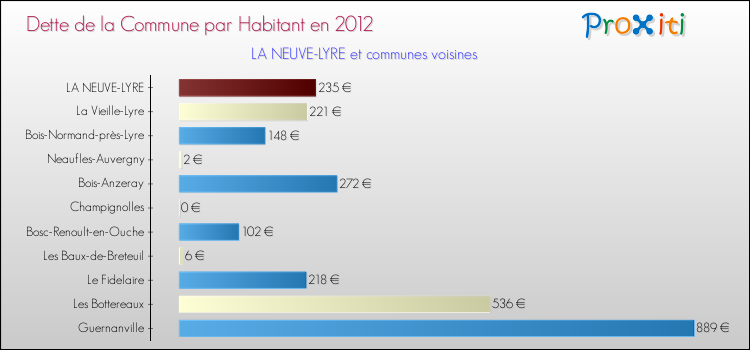 Par rapport aux 628 habitants de La Neuve-Lyre, en 2012 le poids de cette dette représente 235 € par habitant.