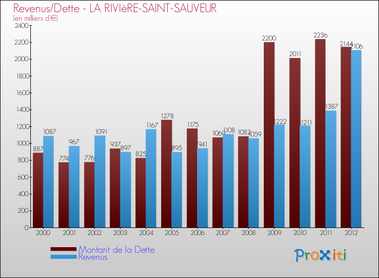 Comparaison Revenus/Dette de La Rivière-Saint-Sauveur (de 2000 à 2012)