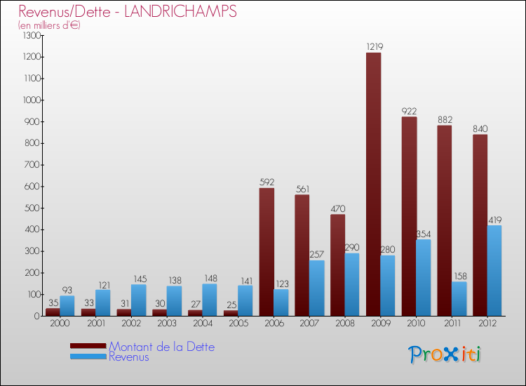Comparaison Revenus/Dette de Landrichamps (de 2000 à 2012)