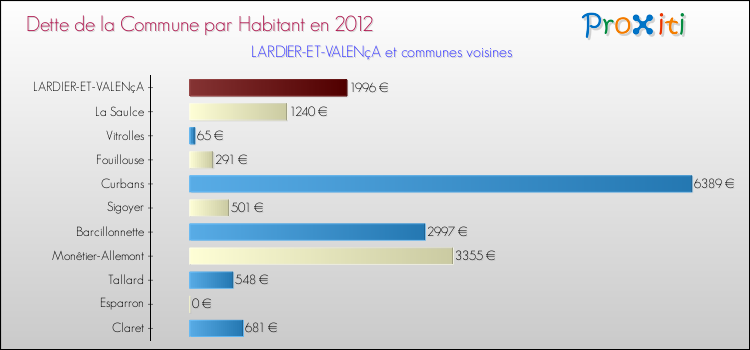 A Lardier-et-Valença, la dette due par habitant de la commune en 2012 est donc plus élevée de 266.91 % que pour des communes similaires.